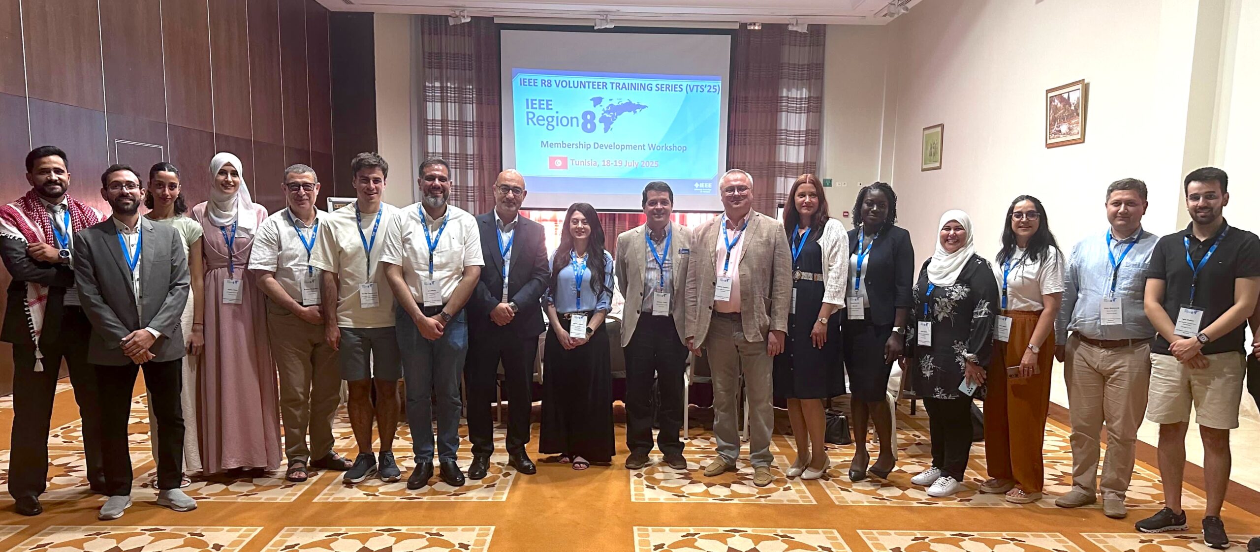 The IEEE Region 8 Volunteer Leadership Training Workshop was successfully held on 18–19 July 2025 at the Verdi Tunis Beach Resort in Gammarth, Tunisia. Volunteers and Section leaders from across the Region participated in interactive sessions on Membership Development, Chapters, and Student Activities, sharing best practices and building action plans.